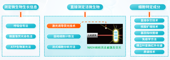 為克服傳統(tǒng)微生物檢測(cè)方法的局限,滿足快速放行的需求,微生物快檢技術(shù)應(yīng)運(yùn)而生??鞕z技術(shù)分為三類:測(cè)定微生物生長(zhǎng)信息、直接測(cè)定活微生物、測(cè)定細(xì)胞特定成分。其中,激光誘導(dǎo)熒光技術(shù)作為一種無損檢測(cè)技術(shù),在水質(zhì)檢測(cè)中尤為重要,為傳統(tǒng)檢測(cè)方法帶來革命性的改變。